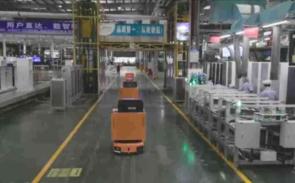 为车载冰箱物流配送打造的智能解决方案,,,,包含产中物流通过潜伏举升AMR搬运至线边,,,产后成品物流智能仓储,,,,流程包含产中物流智能齐套入库,,线边安灯叫料AMR智能配送至线边,,,,成品入库、、、出库,,通过无人堆高车机器人,,,,智能仓储管理替代人工作业管理,,,实现更高存储、、、更高效率、、更具柔性化的解决方案。。。。